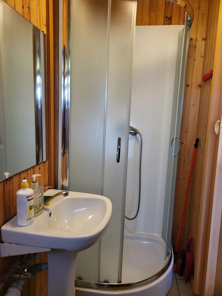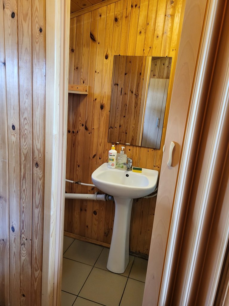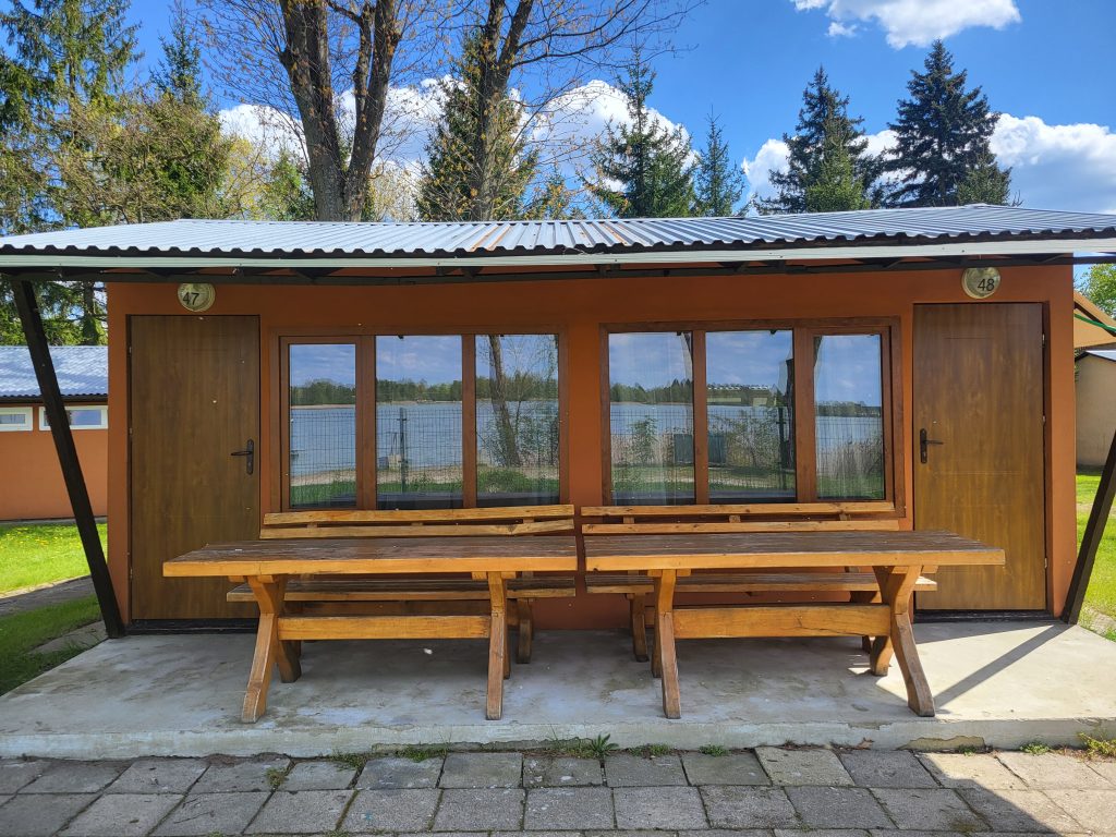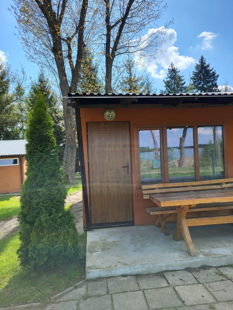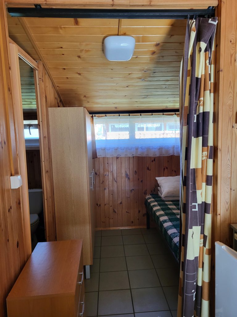 W domkach bliźniakach znajdują się trzy pojedyncze łóżka (dwa obok siebie z możliwością połączenia), stolik, krzesła, szafa, lodówka, czajnik, kuchenka elektryczna jednopalnikowa oraz podstawowe naczynia. Domki wyposażone są w łazienkę z prysznicem, umywalką i toaletą. Przed domkiem znajduje się stół oraz ławka, możliwość grillowania.
