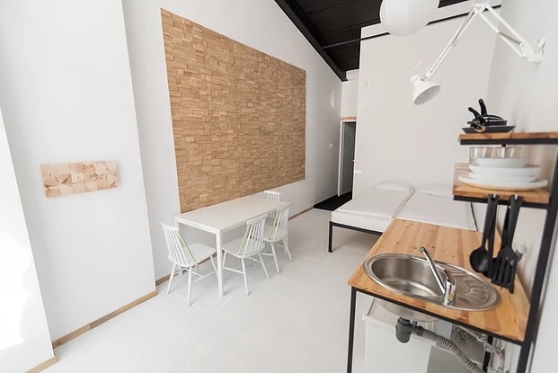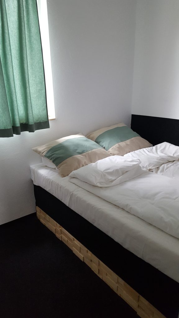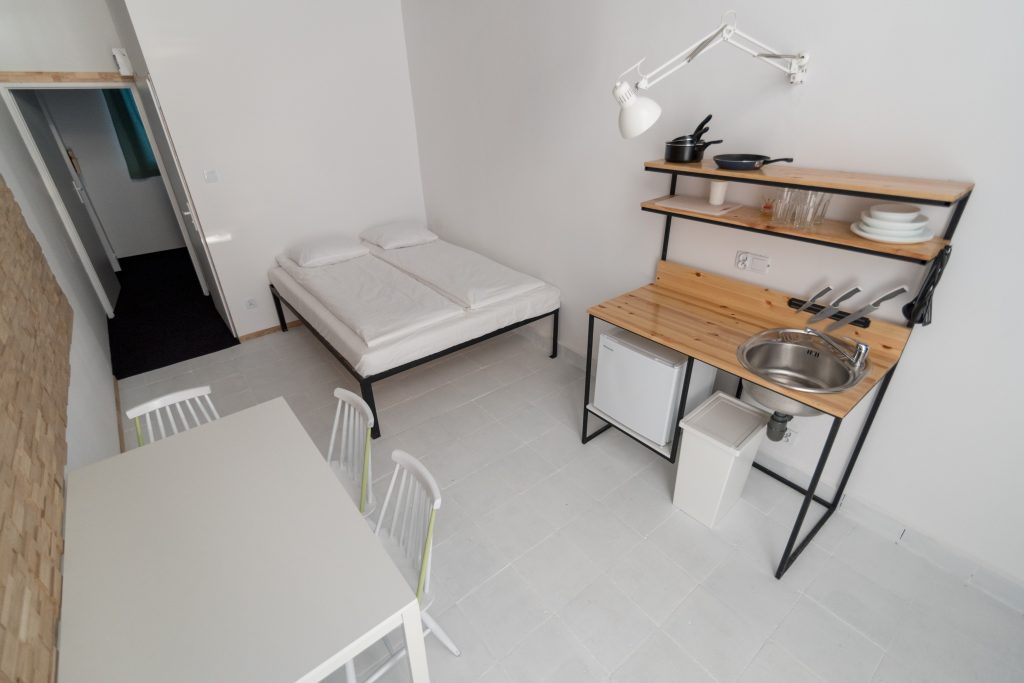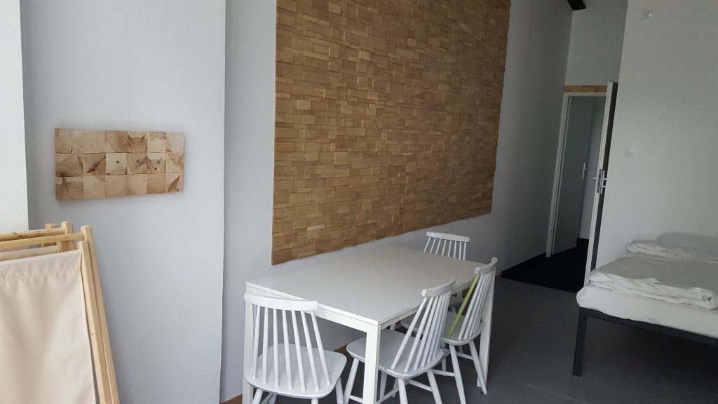 W pokoju dziennym znajduje się łóżko dwuosobowe, stół, krzesła, szafa, TV, leżaki, lodówka, czajnik, kuchenka elektryczna i podstawowe naczynia. W sypialni znajduje się kolejne łóżko dwuosobowe. W pokoju dostępna jest łazienka z natryskiem, umywalką i toaletą. Przed pokojem znajduje się drewniany stół piknikowy z ławkami, możliwość grillowania.
